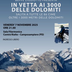 INCONTRI D' AUTUNNO Camposampiero 2025 BEPPE ZIGGIOTTO presenta IN VETTA AI 3000 DELLE DOLOMITI Salita a tutte le 86 cime ...