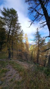 DESCRIZIONE INTINERARIO Questa semplice ma appagante escursione nell’altopiano di Musiera in Lagorai ci permette di ammirare i boschi nei loro bellissimi colori autunnali, dal rosso del faggio al giallo-oro dei larici; già percorrendo in auto la strada asfaltata abbiamo un’anteprima del colorato panorama che ci aspetta. Il percorso inoltre è poco conosciuto e il sentiero mai troppo ripido, caratteristiche che rendono l’escursione una piacevole e rilassante uscita autunnale. Dal parcheggio nei pressi al laghetto di pesca artificiale imbocchiamo il sentiero num. 381 dietro al ristorante, si sale con traccia evidente per il bosco attraverso numerosi tornanti fino a raggiungere la base del Monte Salubio in meno di due ore; qui deviamo a destra per raggiungere in pochi minuti la cima, in questo tratto, il sentiero si fa decisamente più ripido (mt. 1886). Dalla cima si gode un bel panorama a 360° sul circostante altopiano del Lagorai, fra cui si distingue la sua vetta più alta, Cima d’Asta; si riconoscono inoltre le pendici del Monte Grappa e l’altopiano di Asiago, fino alla parete sud della Marmolada. Dopo una meritata sosta scendiamo con attenzione, per ritornare alla base del monte e riprendiamo il sentiero costeggiando Calstel Cucco fino a Forcella Lavoschio e poi ai ruderi dell’omonima Malga. Dai ruderi proseguiamo lungo il sentiero fino alla Malga Lavoschietto, dove sostiamo per il pranzo; ammirando il panorama circostante possiamo notare anche gli effetti della tempesta Vaia, qui ancora molto evidenti. Dopo la sosta per il pranzo riprendiamo il sentiero in direzione di Malga Serra, fino ad incrociare la ex strada militare che ci riporta ai ruderi di malga Lavoschio e a Musiera in circa due ore, sempre immersi nella tranquillità del colorato bosco.